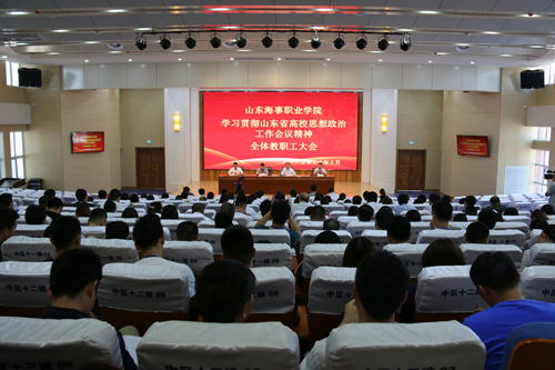 5月18日下午,学院在图书馆报告厅召开全体教职工大会学习贯彻山东省高校思想政治工作会议精神。学院党委书记、院长王敬良,党委委员、副院长李振鹏,党委副书记徐立清,院长助理仉继航以及学院全体教职工参加了学习会议,会议由徐立清书记主持。