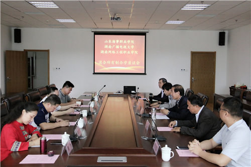 5月11日上午,湖南广播电视大学校长彭元,副校长邓楠、刘建军携同湖南网络工程职业学院教务处副处长欧阳文萍等一行到学院就混合所有制办学进行交流。学院院长、党委书记王敬良,院长助理宋志刚、研究室主任郭素森、教务处处长张庆会等相关人员参加了座谈会。