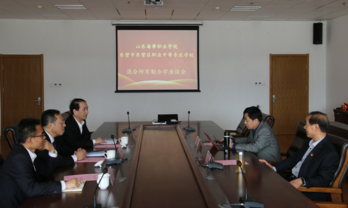 3月30日下午,东营市东营区职业中等学校校长任典云、常务副校长鞠荣祥、校长助理王永强一行来学院考察交流办学经验。学院党委书记、院长王敬良,研究室主任郭素森出席了交流会。