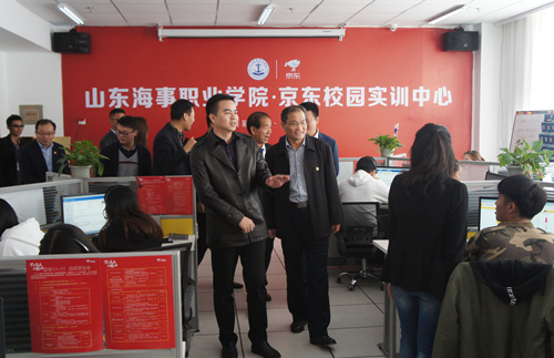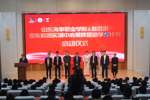 11月2日,山东海事职业学院京东校园实训中心揭牌仪式在学院图书馆报告厅隆重举行。京东集团全国客服中心党委书记汪世龙、潍坊市滨海区管委会副主任杜长明,新迈尔(北京)科技有限公司总裁车云月、学院院长王敬良等出席揭牌仪式。会议由学院党委副书记徐立清主持。