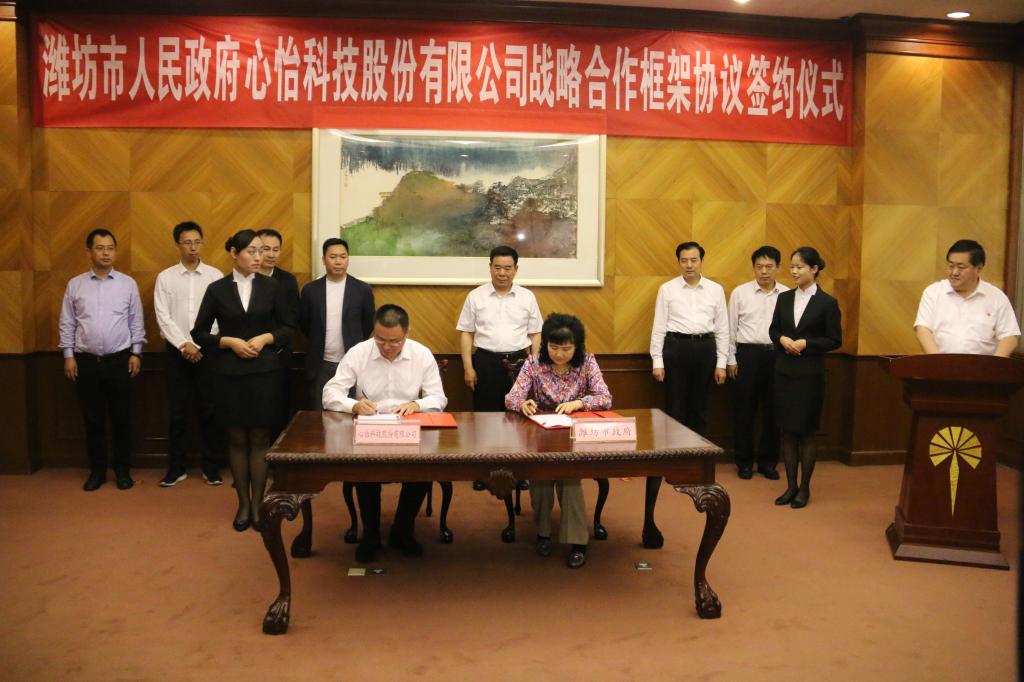 6月6日,潍坊市政府与心怡科技股份有限公司签署战略合作框架协议,共建混合所有制山东海洋技术大学,发展与大学建设相关联的现代仓储和智能产业。市委书记、市人大常委会主任刘曙光,市委常委、秘书长刘建国出席签约仪式,副市长李平代表潍坊市政府与心怡科技股份有限公司董事长邢玮签署了战略合作框架协议。山东海事职业学院院长、山东海洋技术大学筹建办主任王敬良参加活动。