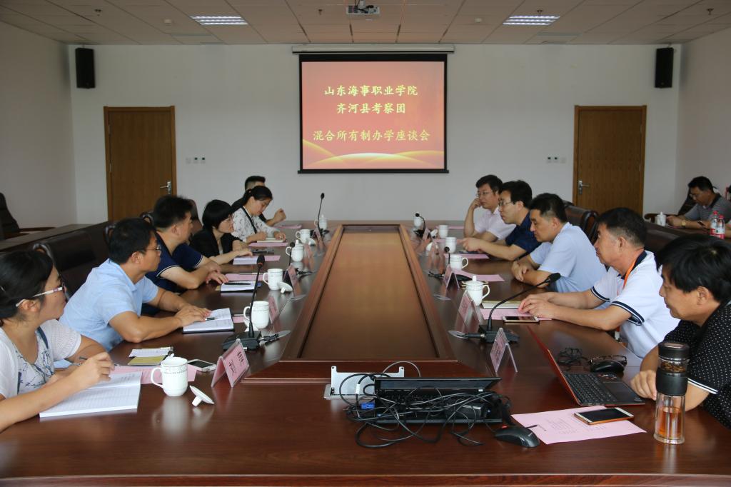 8月30日,由齐河县副县长王炜带队,齐河县教育局局长葛福义、教育局党组副书记刘方红、职业中专校长谯健等组成的考察团一行6人,来学院考察交流混合所有制办学。山东(潍坊)公共实训中心主任邵长山,潍坊滨海区社会事业局党委副书记、局长张加光,学院副院长李振鹏等参加了相关活动。