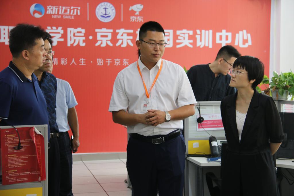 齐河县考察团一行在邵长山主任的陪同下,参观了山东海洋技术大学主校区,现场了解大学筹建的有关情况,随后在学院副院长李振鹏的陪同下参观了学院航空高铁实训基地、金工工艺实训车间、京东校园实训中心等实训场所,听取了学院两个混合所有制二级学院办学运行情况的详细介绍。