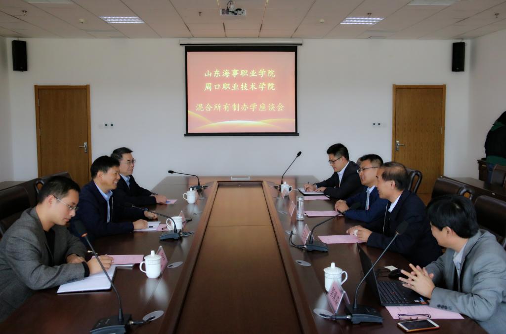 10月10日下午,河南省周口职业技术学院校长李清臣、党委副书记赵振然、党政办公室副主任王晖一行到学院座谈交流混合所有制办学。学院党委书记、院长王敬良,党委副书记、副院长徐立清以及研究室、党政办公室相关负责人参加了座谈交流活动。