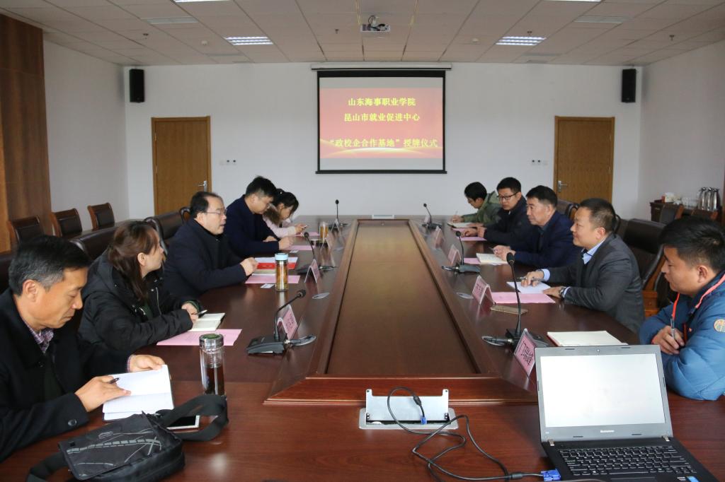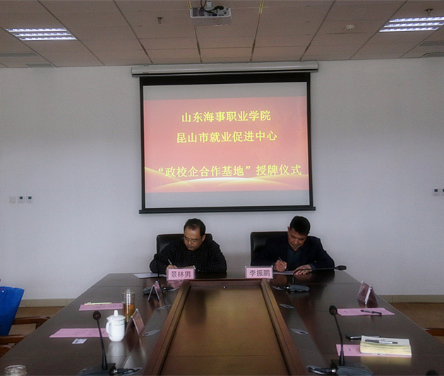 11月21日上午,学院与昆山市就业促进中心共建“昆山市就业促进中心政校企合作基地”签约授牌仪式在学院隆重举行,政校企三方共建的昆山市就业促进中心“政校企合作基地”在学院挂牌成立。昆山市就业促进中心副主任景林男,人力资源行业协会秘书长沈国良,昆山厚声电子工业有限公司、定颖电子(昆山)有限公司有关领导,学院副院长李振鹏,就业工作处、机电与信息工程学院、港航管理学院、航海学院等部门相关负责人参加了仪式。