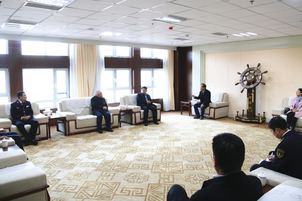 12月4日,山东海事局局长袁宗祥在潍坊教育局局长徐友礼、潍坊海事局局长柳强、潍坊高等教育办公室副主任李广敬的陪同下,来学院调研指导工作,学院党委书记、院长王敬良,党委副书记、副院长徐立清,副院长李振鹏参加调研活动。