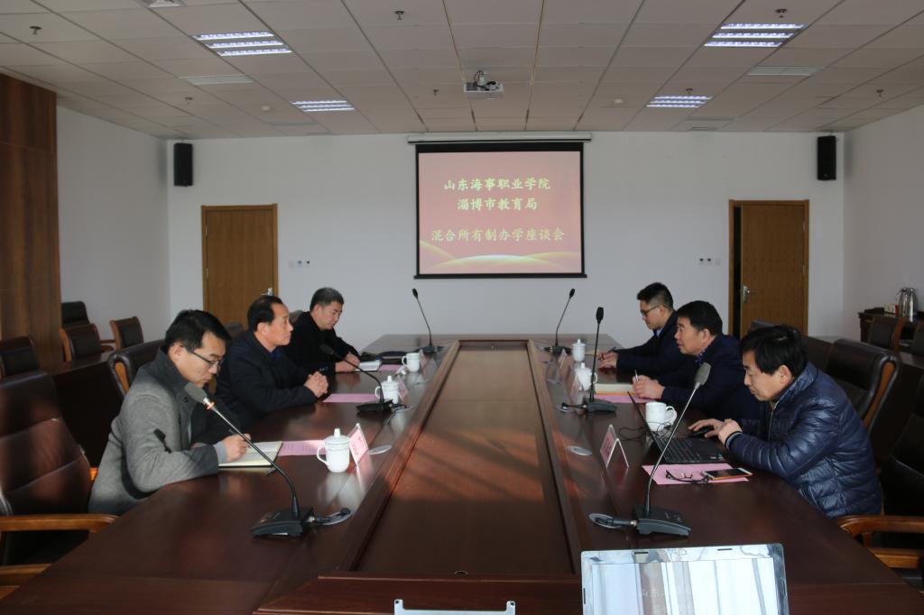 12月18日,淄博市市委教育工委副书记、淄博市市教育局党委副书记、副局长何向东,淄博市教育局职级办主任马永,淄博市教育局人事科副科长赵杰一行来学院考察交流混合所有制办学。学院党委书记、院长王敬良,副院长李振鹏,研究室主任郭素森等参加了座谈会。