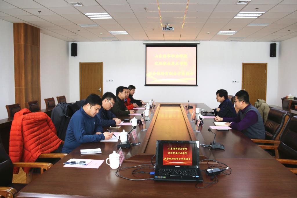 座谈会上,学院研究室郭主任对沈阳技术学院来学院考察交流表示欢迎,并结合学院混合所有制办学宣传纪录片立足学院多元办学体制机制模式框架向来宾详细介绍了学院基本办学情况、校企合作办学优质成果及混合所有制办学内涵。沈阳职业技术学院考察团一行对学院山海模式下学院高职技术人才培养机制表现出浓厚兴趣,并就校企合作二级学院日常管理体系建设提出了一系列建设性问题。研究室郭主任聚焦现今社会投资大环境下教育投资趋势和学院校企合作对接现状从学生、企业、学校三个角度向来宾具体解析了产权层面产教融合实际落实渠道。双方还就校企合作企业投入类型、资产确权、招生队伍建设、专业师资考核培养、二级学院课程建设、二级学院企业对口人才培养等细节问题展开了深入交流研讨。