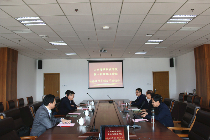 4月12日,泰山护理职业学院党委书记孙兰俊,党委委员、副院长张建国等一行4人来学院探讨学习校企合作混合所有制办学经验,学院党委书记、院长王敬良,研究室主任、党政办公室有关负责人参加座谈。