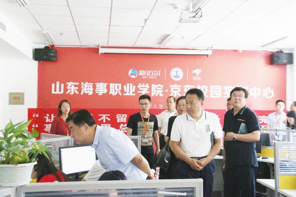 考察交流期间,德州科技职业学院党委书记展德明在学院副院长李振鹏、院长助理宋志刚等陪同下实地考察参观了学院航空高铁实训基地和京东校园实训中心。
