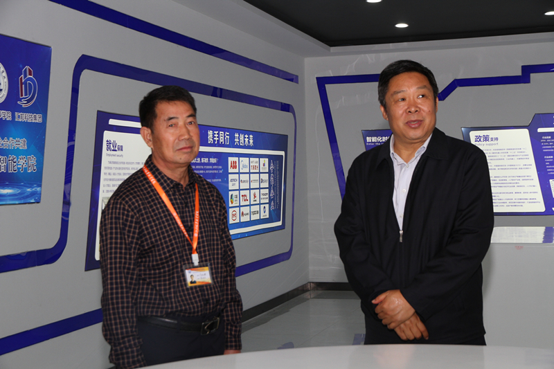 随后,张主任一行在学校领导的陪同下实地参观考察了学校航空高铁实训基地、工业机器人实训基地。