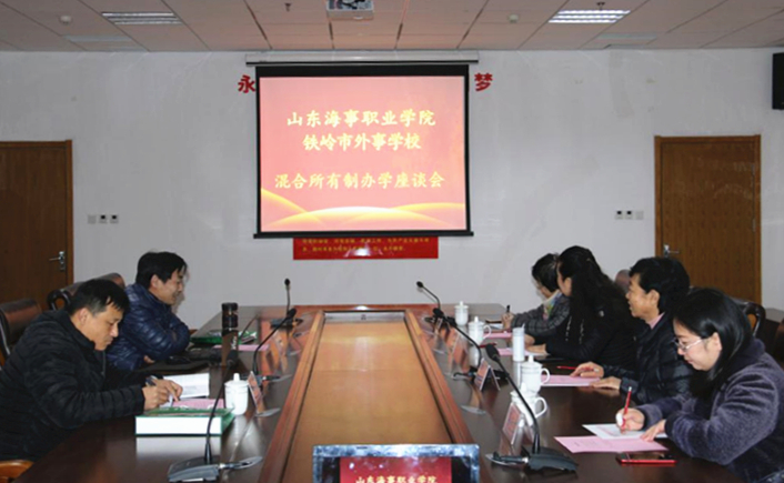 12月17日,铁岭市外事学校董事长兼校长李华、执行校长计桂英等一行四人来学校研讨交流混合制办学。学校研究室主任郭素森,教务处副处长刘学义出席活动。