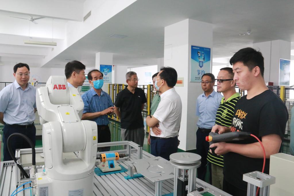 校长王敬良、副校长宋志刚陪同考察团实地参观了学校航空高铁实训基地、国际海洋工程实训中心、人工智能实训基地等实训场地。参观过程中,校长王敬良对混合所有制办学的经验做法、成果成效以及遇到的痛点难点作了介绍汇报,并与考察团领导进行深入交流。学校混合所有制办学经验得到考察团领导高度认可,学校在全国混合所有制办学领域中的引领作用愈发凸显。