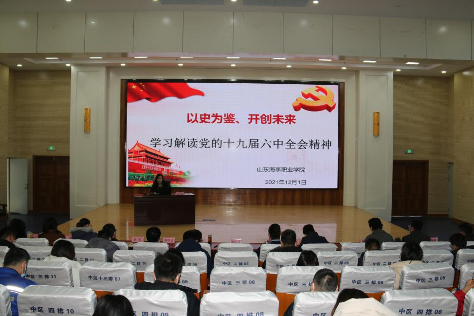 12月1日下午,为深入学习党的十九届六中全会精神,根据学校学习工作方案,学校在图书馆报告厅举办党的十九届六中全会精神宣讲报告会,潍坊市教育系统宣讲成员、学校马克思主义学院院长冯小红作《以史为鉴、开创未来》宣讲报告,学校师生党员共计180余人参加了本次报告会。
