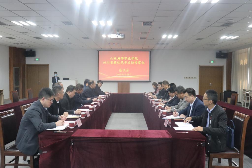 座谈前,四川省攀枝花市政协副主席、市工商联主席赵琪,市政协常委、市政协教科卫体委员会主任刘自力等一行9人在潍坊市政协、教育局相关领导和学校领导班子的共同陪同下实地参观考察了我校航海模拟船实训基地、航空实训基地、国际海洋工程(OPITO)实训基地、工业机器人实训基地和航海仿真实训基地。